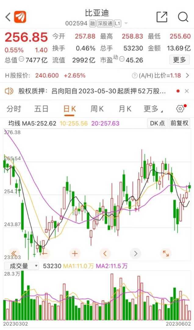 尽管遭遇此次突发事件,但比亚迪股价表现稳定。截至6月2日午间收盘,比亚迪报收256.85元/股,微涨0.55%,市值达到7477亿元。