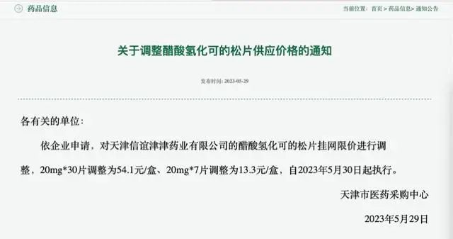 在医保局的推动下,醋酸氢化可的松片的价格得到了有效调整。四川省药械招标采购服务中心近日发布了《关于公布醋酸氢化可的松片降价及挂网信息的通知》,调整了天津信谊津津药业有限公司生产的醋酸氢化可的松片的降价及挂网信息。调整后,规格为20mg/片的醋酸氢化可的松片,每瓶30片装的价格为54.1元,每板7片装的价格为13.3元,降价幅度高达80%。目前,包括四川在内的多个省份已发布相关价格调整通知,挂网价格均与四川价格一致。