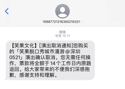 此外,继北京和上海相继发布暂停笑果文化线下演出后,深圳原定的笑果文化演出也被取消。同时,笑果文化演出门票在相关平台上已无法搜索到。由HOUSE(李昊石)引发的事件,正在波及整个脱口秀行业,另一知名脱口秀喜剧公司单立人也似乎取消了一些演出安排。