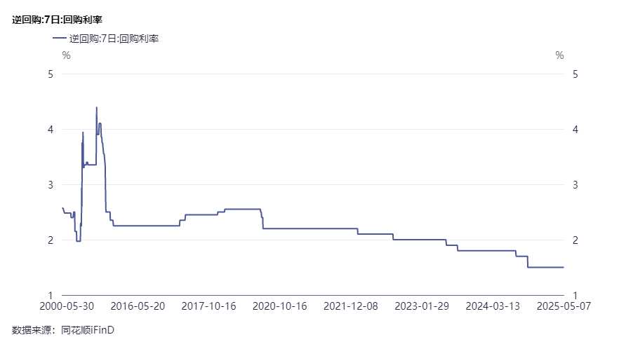 降低政策利率0.1个百分点,预计将带动LPR同步下行。5月7日,中国人民银行发布公开市场业务公告,宣布从2025年5月8日起调整7天期逆回购操作利率。此举旨在实施好适度宽松的货币政策,加力支持实体经济。