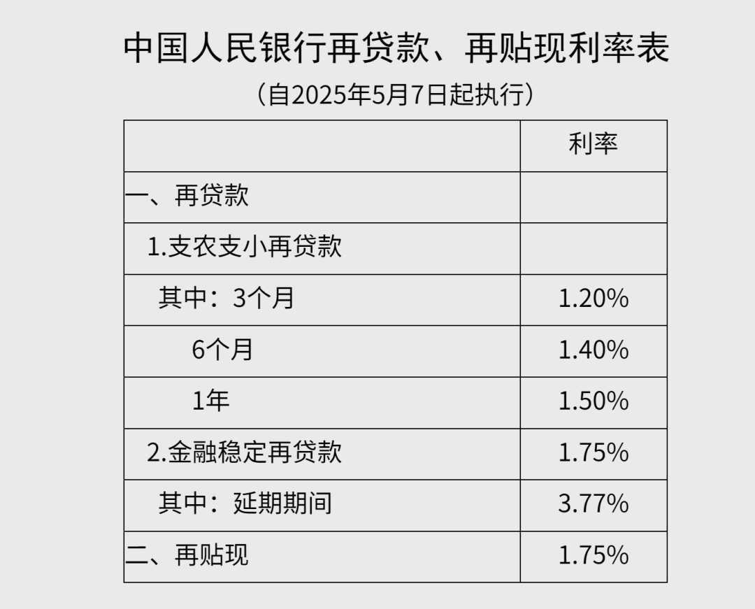 每经AI快讯,5月7日,中国人民银行更新了再贷款、再贴现利率表。其中,3个月、6个月和1年期支农支小再贷款利率分别调整为1.2%、1.4%和1.5%,金融稳定再贷款利率为1.75%,延期期间利率更是高达3.77%;再贴现利率维持在1.75%不变。这一调整对金融市场将产生深远影响。