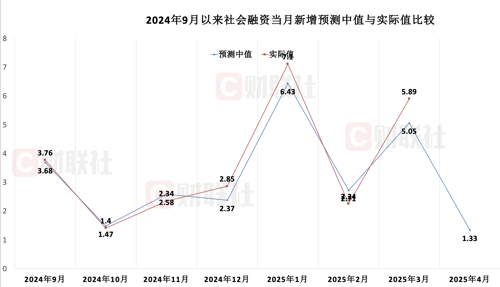 4月社融增速有望大幅回升,新增社融预测中值为1.33万亿元。3月新增社融5.9万亿元,同比多增1.1万亿元。机构预测区间为0.9万亿至1.6万亿元,同比低基数下,超6成机构预测4月末社融增速超8.8%。