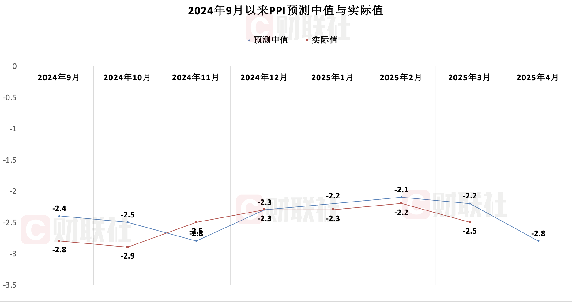 PPI方面,3月同比下降2.5%,降幅扩大。机构预测4月PPI同比中值为-2.8%。业内人士分析,关税政策影响大宗商品价格下跌,国内相关行业价格下行。分行业看,上游原材料行业价格跌幅扩大,中下游化工品价格偏弱。