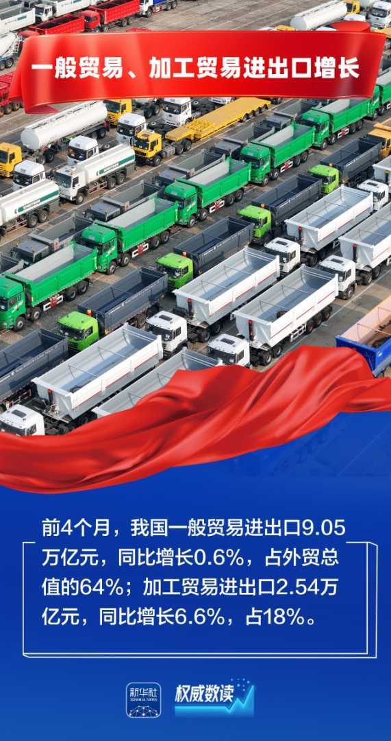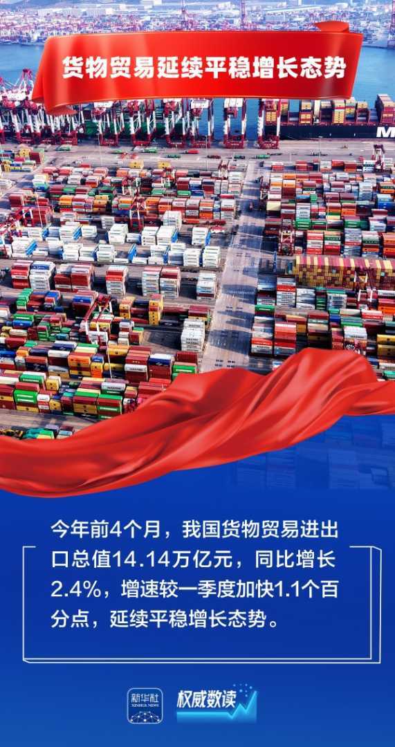我国前4个月货物贸易进出口总值同比增长2.4%