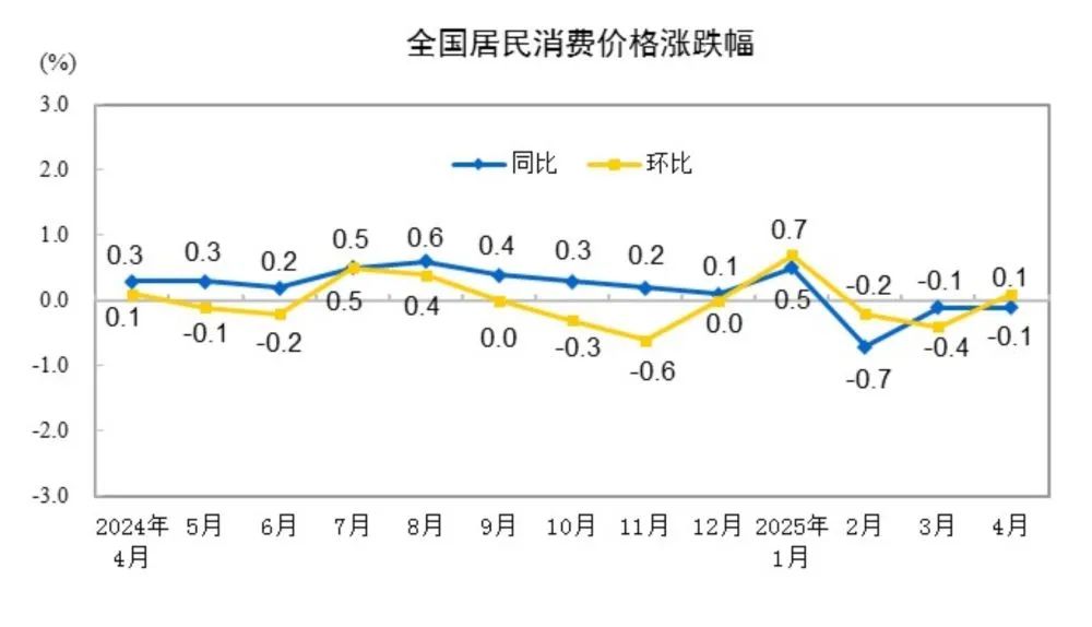 4月CPI环比由降转涨,居民消费价格同比下降0.1%