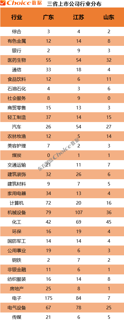 行业分布上,广东上市公司主要集中在电子、机械设备、计算机等行业,展现出强大的产业优势。而江苏和山东则在机械设备、化工等行业表现突出。