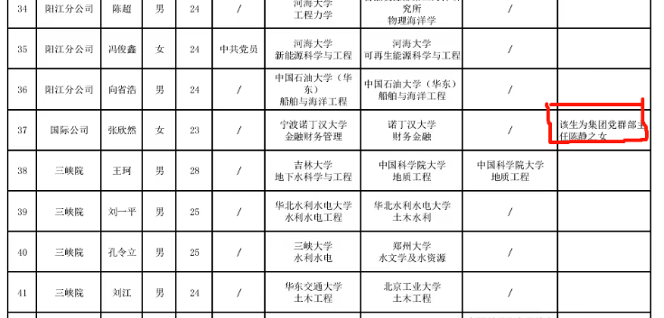 这一备注信息迅速引发了争议。不久后,长江设计集团修改了张欣然的备注信息,补充说明了根据集团规定,拟聘人员为集团领导、总师、副总工及各单位主要负责人的配偶、子女时,应将相关信息一并公示。