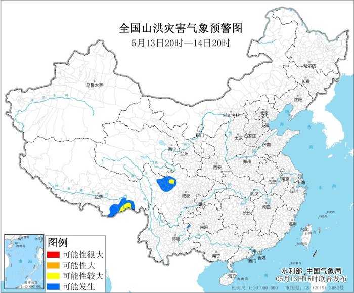 水利部和中国气象局5月13日联合发布黄色山洪灾害气象预警,预计四川西北部、贵州西部、云南东部、西藏东南部等地部分地区可能发生山洪灾害,需做好实时监测、防汛预警和转移避险等工作。