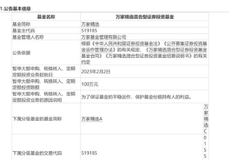 此外,2022年冠军基金经理黄海管理的万家精选也于2月2日起限购100万元。近期,多位明星基金经理旗下产品相继宣布限购,包括郑澄然、杨锐文、周海栋、何帅等。从限购原因来看,多是为了产品平稳运作、保护基金份额持有人利益。