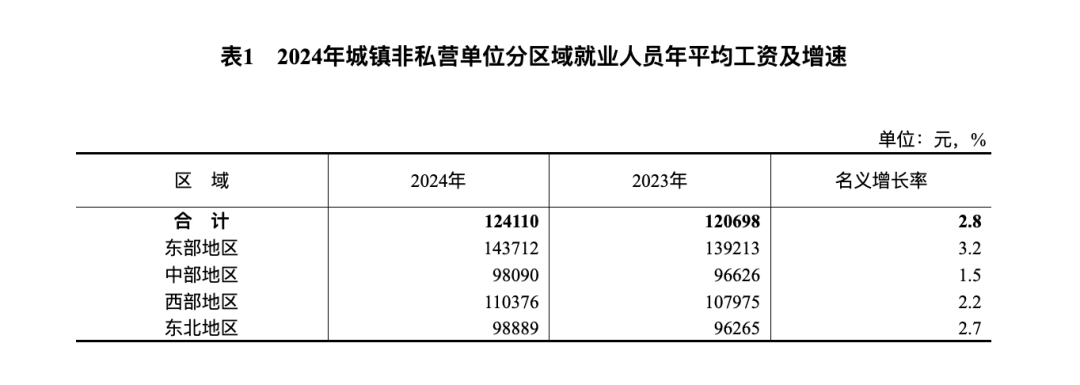 2024年,全国城镇非私营单位就业人员年平均工资124110元,比上年增加3412元,名义增长2.8%,按可比口径增长2.6%。这一增长体现了国内经济的平稳发展。
