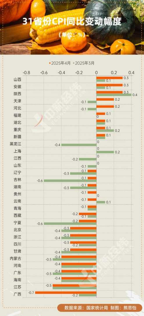 中新经纬5月17日电 近日,国家统计局公布了31省份2025年4月居民消费价格指数(CPI),数据揭示出国内经济的新动向。