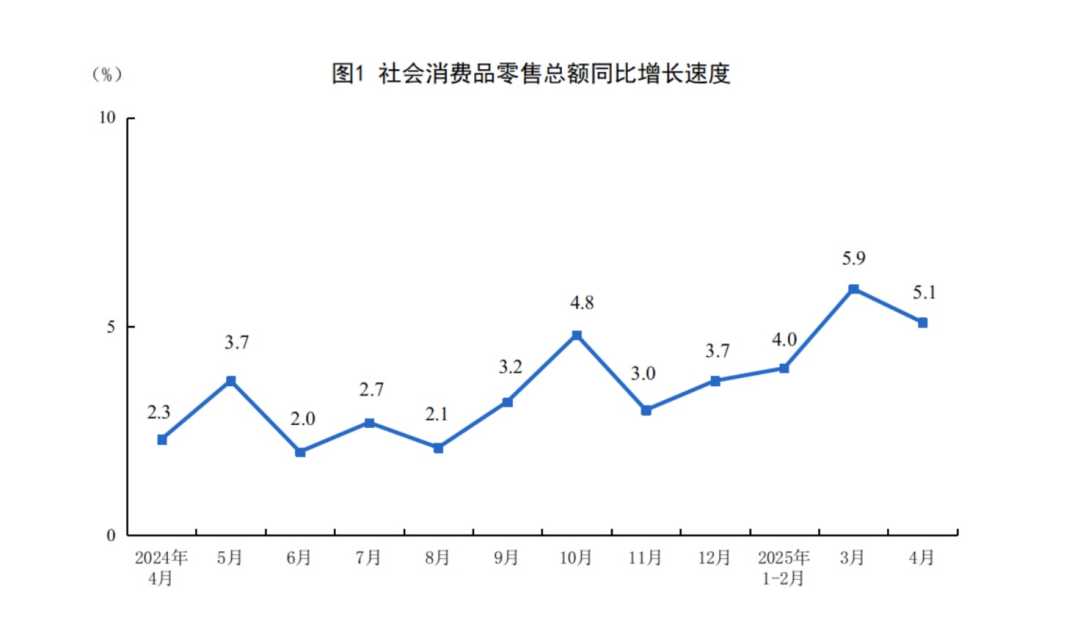 4月社零同比增速有所回落。(图源:国家统计局官网)