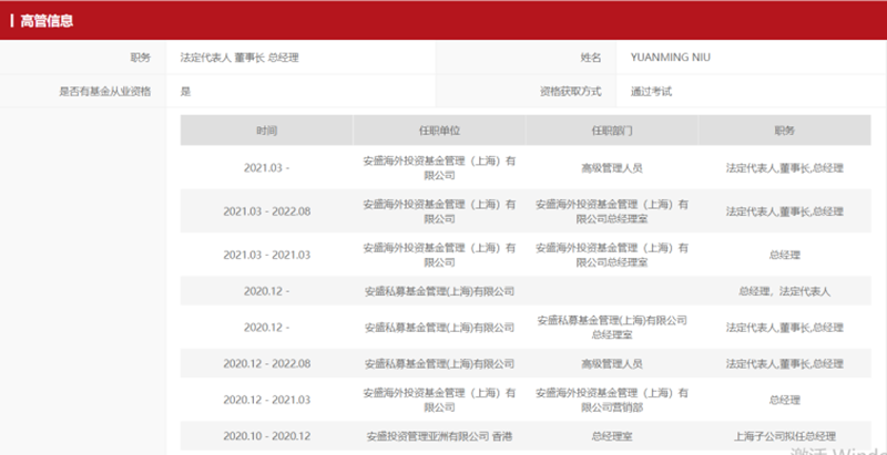 此外,有业内人士对网传文件的真实性表示质疑。他们认为,作为私募高管应该有一定的辨别能力,而且文件中的经历有很明显的诈骗痕迹。不过,从公开信息来看,中基协公示信息显示安盛私募是一家外商独资企业,其法定代表人、董事长为YUANMING NIU,与文件中的记载一致。