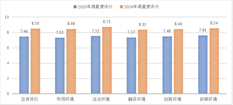 目前,各地均建立了中小企业发展工作协调机制,近半数城市如苏州、武汉等还建立了中小企业督查工作机制。在全国评估工作的推动下,已有23个省(区市)开展了本地区中小企业发展环境评估工作。超过20个城市设立了中小企业发展基金,旨在引导更多社会资源投向早期、小型、长期和硬科技企业。近年来,中小企业发展环境整体优化显著,企业满意度总体评分由2020年的7.46分逐年提高至2024年的8.50分。