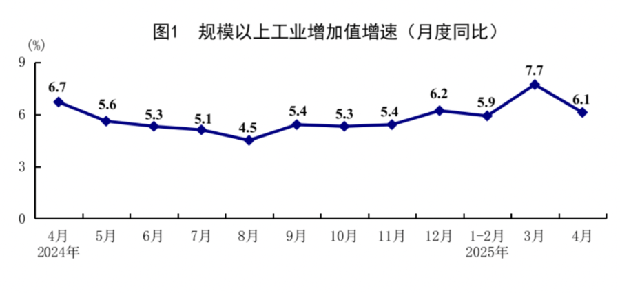 一季度我国经济同比增长5.4%,而4月份规模以上工业增加值、全国服务业生产指数同比增速均达到6%,经济运行整体平稳。尽管4月中下旬以来,我国出口美国关税大幅提升,4月对美国出口同比下降,但当月整体出口依然表现出强大韧性,好于外界预期。