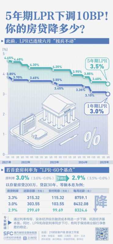 5月20日,央行宣布LPR下调10BP,为今年首次降息。据测算,200万元房贷30年总利息可省3.86万元。降息政策对楼市、股市及经济有何影响?敬请关注。