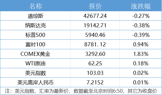 1、美国三大股指小幅收跌,道指跌0.27%,标普500指数跌0.39%,纳指跌0.38%,中概股多数下跌。