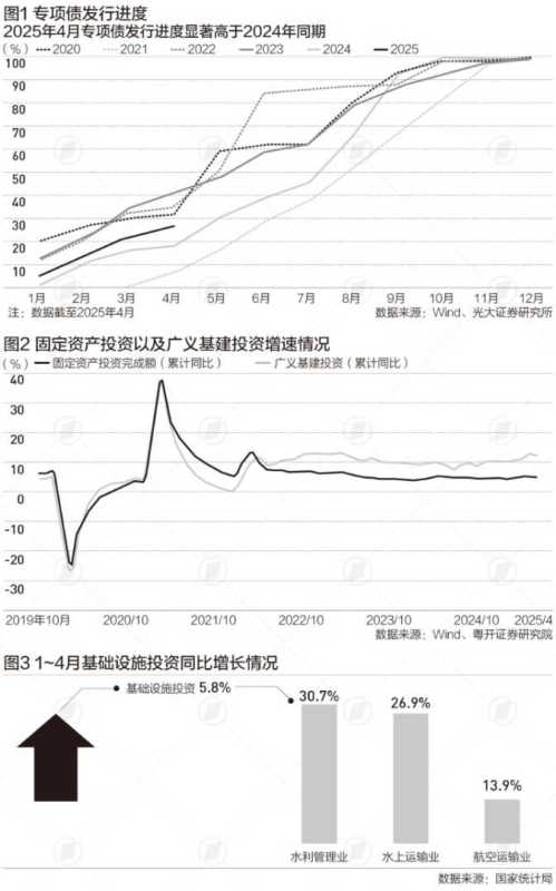 数据显示,5月1日至20日,全国地方政府发行新增专项债约3800亿元,明显超过4月份的2301亿元发债规模。高瑞东认为,随着多地集中推动重大项目开工,预计2025年基建投资将维持较高的景气度。