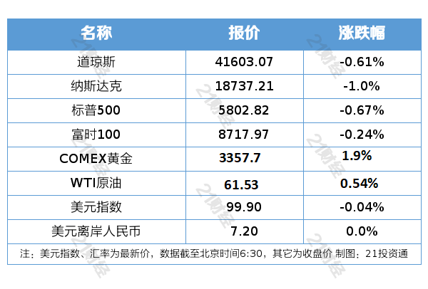 1、美股三大指数收跌,纳斯达克中国金龙指数微涨。热门科技股普遍下跌,苹果跌超3%。COMEX黄金期货收涨近2%。