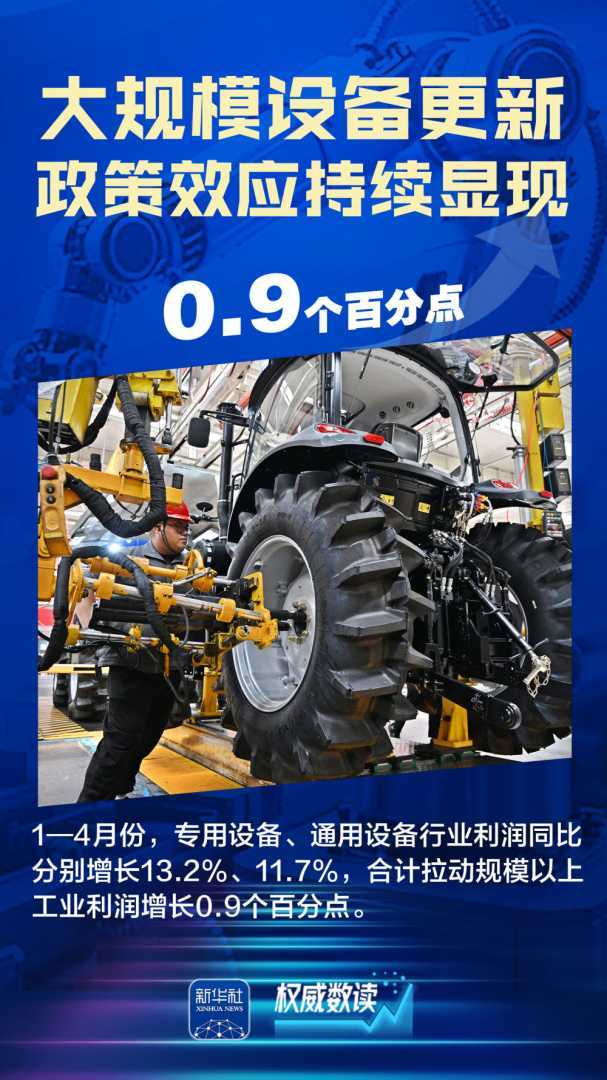 今年前4个月,我国工业企业利润增长加快,工业投资保持增长,装备制造业引领作用突出,“两新”政策效应持续显现,充分展现出我国工业经济的强大韧性和卓越的抗冲击能力。