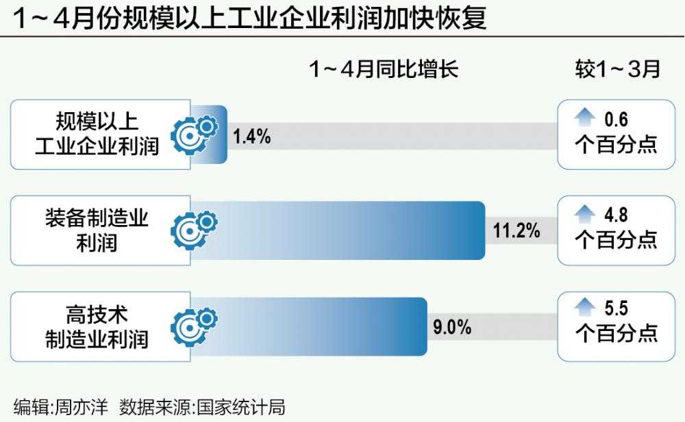 1~4月规模以上工业企业利润增长加速,经济稳步复苏