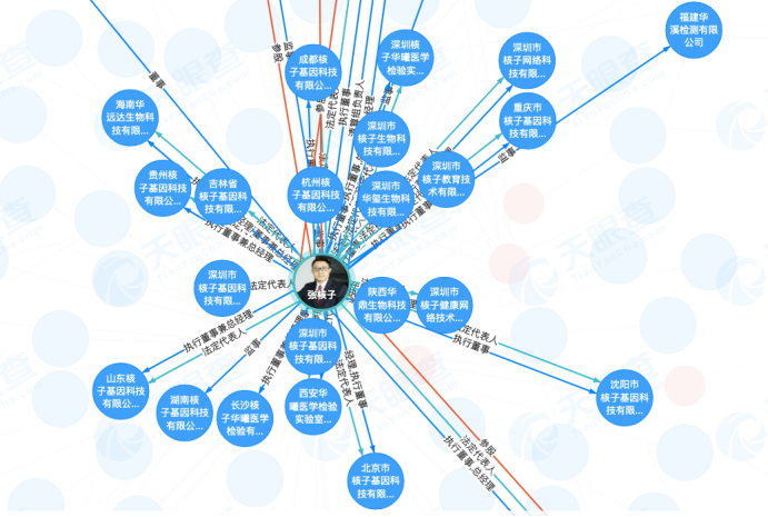 随着事件发酵,张姗姗这个名字浮出水面。她在超过30家类似企业中担任监事,其背后的实控人是核子基因的创始人张核子。张核子目前掌握着89家公司的实际控制权,其中大量公司业务涉及检测检验业务。