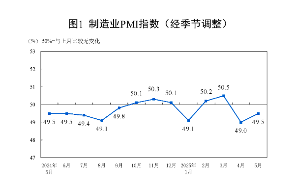 国家统计局5月31日发布的数据显示,5月份,制造业PMI为49.5%,比上月上升0.5个百分点;非制造业商务活动指数为50.3%,比上月下降0.1个百分点;综合PMI产出指数为50.4%,比上月上升0.2个百分点,我国经济总体产出保持扩张。这些数据表明,在政策的推动下,我国经济正在稳步复苏。
