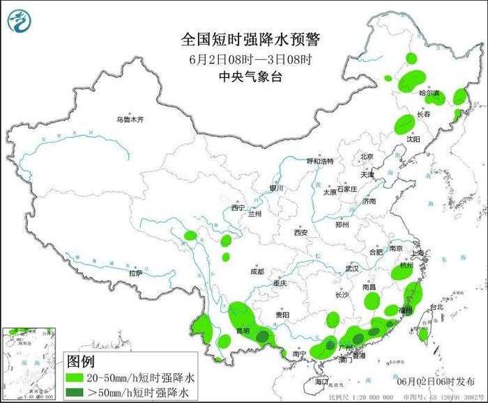 中央气象台6月2日6时再次发布暴雨蓝色预警: