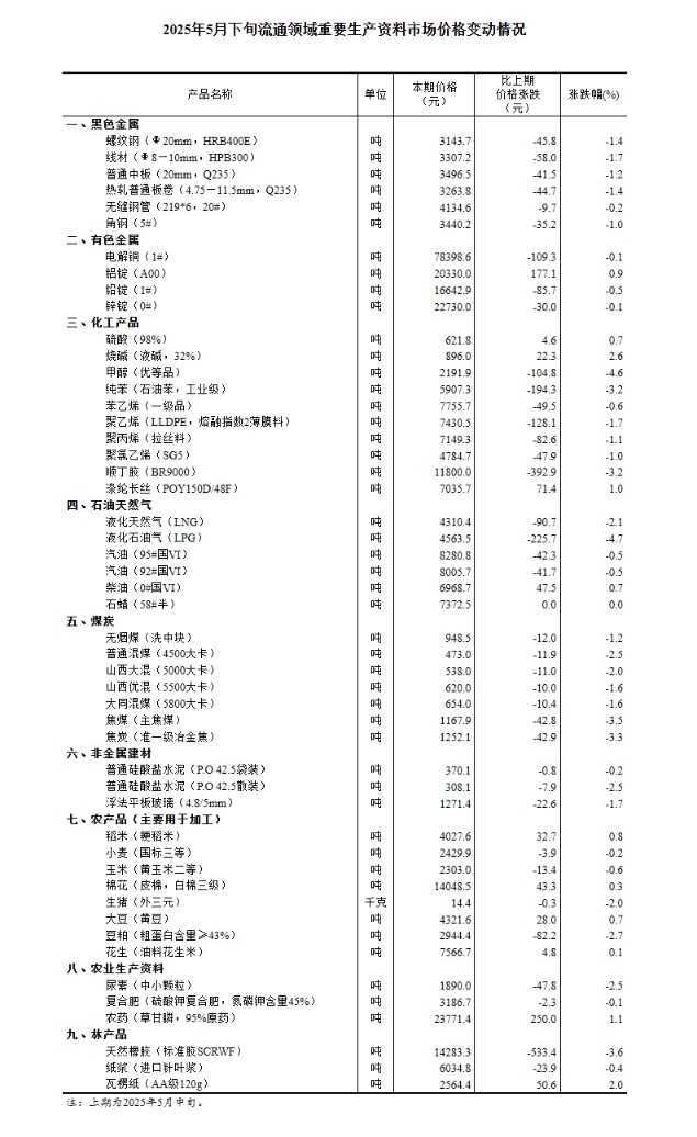 据国家统计局网站消息,2025年5月下旬与5月中旬相比,全国流通领域9大类50种重要生产资料中,11种产品价格上涨,38种价格下降,1种持平。这一数据反映了国内生产资料市场的价格波动情况,对经济运行具有重要影响。