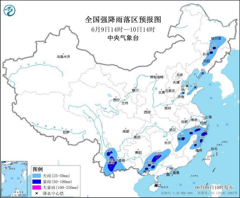 与此同时,北方部分地区遭遇高温的同时,江南中东部、华南西部及西南地区南部等地在6月9日至10日将有中到大雨。其中,浙江中南部、江西中东部、福建北部、湖南南部、广西中北部、广东北部、云南中东部等地部分地区有暴雨,局地更是可能出现大暴雨,上述部分地区还将伴有短时强降水,局地有雷暴大风等强对流天气,这可能对当地居民的出行和生活带来不便。