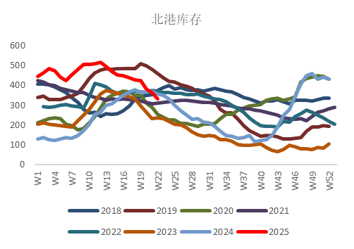 图3:北港玉米库存、南港内外贸玉米库存(万吨)