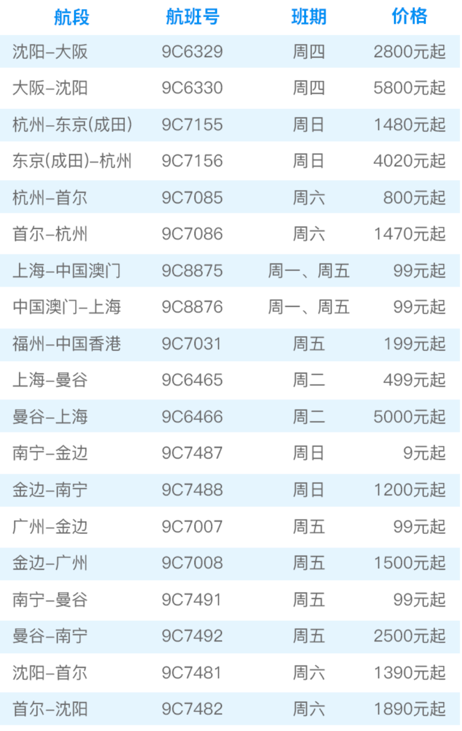国航也宣布将恢复多条国际航线,包括马尼拉、雅加达、东京等航线的恢复计划。海南航空将继续运营10条往返国际客运航线,并计划加密重庆-罗马直飞航线至每周两班往返,往返均承运客货,加密后的航线运力恢复至疫情前水平。春秋航空于10月14日起开通沈阳-大阪、杭州-东京(成田)、杭州-首尔、上海-曼谷等8条往返港澳、国际航线。吉祥航空也计划新开及恢复部分国际航线,包括南京-首尔、南京-大阪等航线。