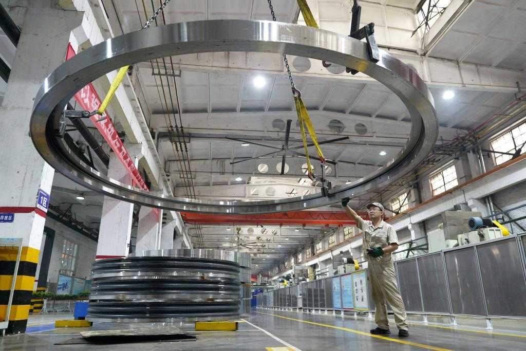 5月22日,工人在洛轴集团风电三车间生产线上作业。新华社记者李嘉南摄