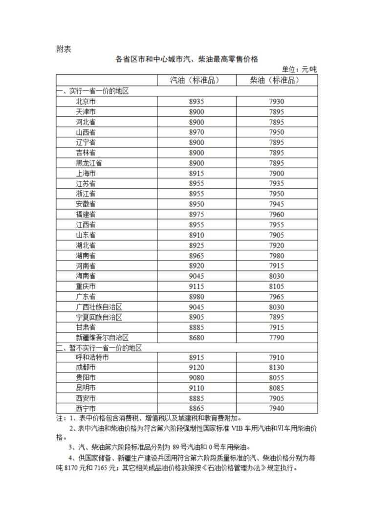 上证报中国证券网讯 据国家发展改革委消息,根据近期国际市场油价变化情况,按照现行成品油价格形成机制,自2025年6月17日24时起,国内汽、柴油价格(标准品,下同)分别迎来上调,每吨分别上涨260元和255元。此次价格调整将直接影响各省(区、市)和中心城市的汽、柴油最高零售价格,具体价格见附表。