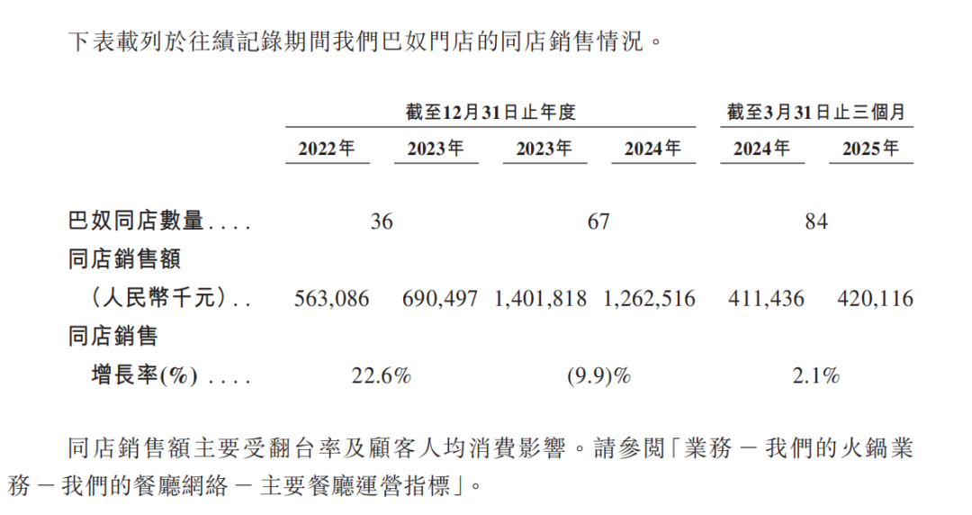 巴奴品牌创立于2001年,截至2025年6月9日,巴奴在全国拥有145家门店,均为直营模式,覆盖39个城市。但2025年第一季度,巴奴仅新增3家门店,扩店节奏明显不及预期。2024年,巴奴顾客人均消费从上年的150元降至142元,同店销售额同比下降9.9%。2025年一季度,顾客人均消费进一步降至138元。