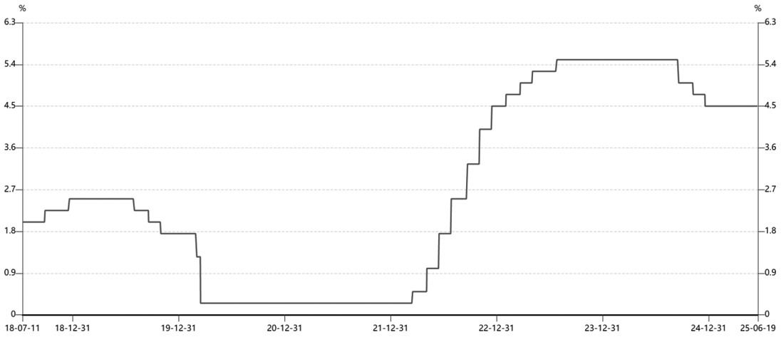 图为美国联邦基金目标利率