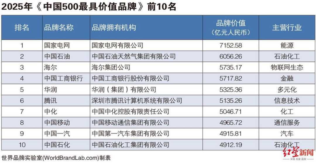 6月18日,第22届世界品牌大会发布2025年《中国500最具价值品牌》报告,国家电网登顶。四川14个品牌上榜,食品饮料业入选最多。品牌价值总计42.03万亿,增幅8.97%。