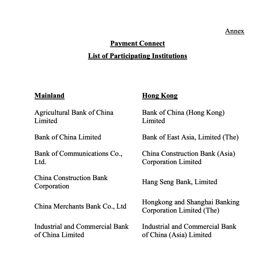 中银香港发布新闻稿表示,将担任跨境支付通唯一代理结算行,并以参加行身份支持首阶段全部业务场景的支付服务。