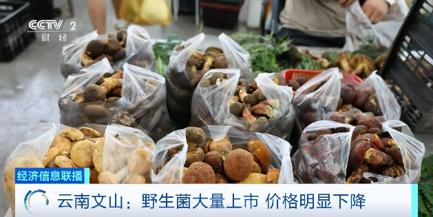 随着雨季到来,云南文山野生菌进入采收旺季,价格大幅下降。鸡枞菌等野生菌价格便宜一半以上,市民纷纷购买尝鲜,市场繁荣带动当地经济发展。