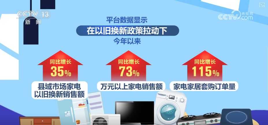 平台数据显示,2025年以来,县域市场家电“以旧换新”销售额同比增长35%,万元以上家电销售额同比增长73%,家电家居套购订单量同比增长115%。