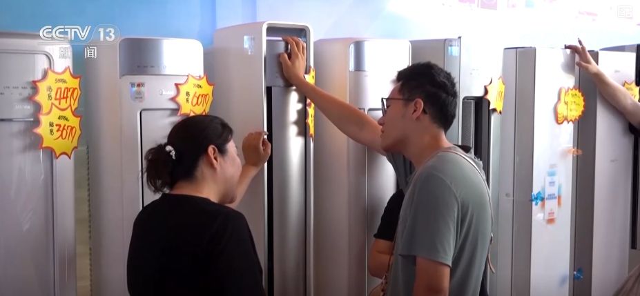店主称,6月以来,店内销售量环比增长33%,空调、冰箱等清凉家电成消费主力。