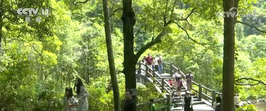广西贺州姑婆山国家森林公园,森林覆盖率高达93%,年均温度18.2℃,成为游客“避暑秘境”。山间绿树成荫,仙姑瀑布带来丝丝凉意,游客感受清凉,纵享绿水青山。