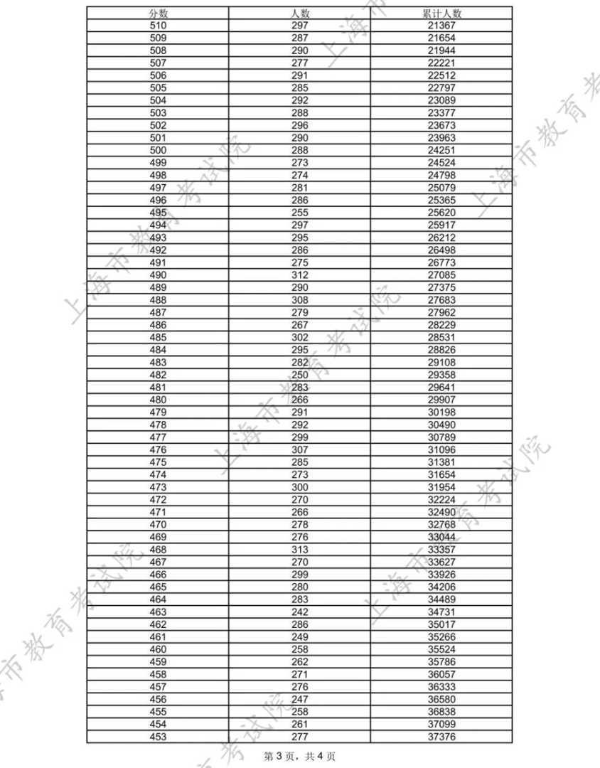 为便于考生考后填报志愿,上海市教育考试院公布如下成绩分布信息,为考生提供重要参考依据。