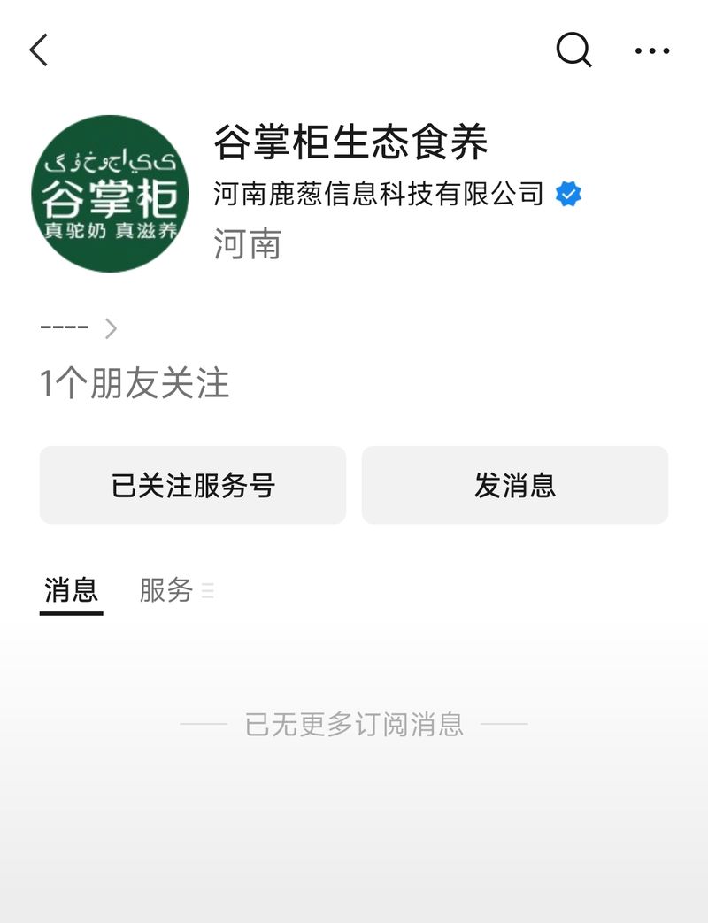 “谷掌柜生态食养”微信公众号内容也已被清空。 微信公众号截图