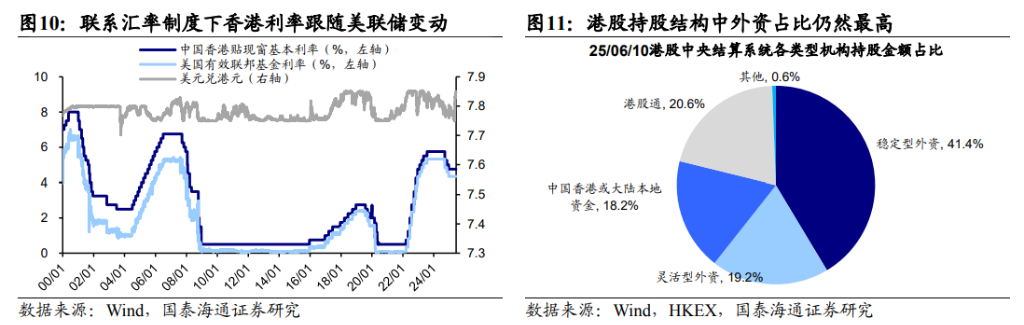 港股流动性对海外依赖度减弱。2020年以来,外资占比持续下降,港股流动性对海外依赖逐步减弱,内资加速流入港股,港股流动性与内地关联加深。港股开始更大程度反映内地资金行为逻辑和风险偏好,这或是近年港股与A股联动性增强的核心原因。