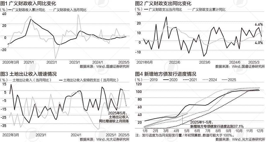 杨业伟认为,截至5月,累计广义财政赤字约为3.3万亿元,假设今年名义GDP增速为4%,目前累计广义赤字率为2.4%,高于过去五年多数的同期水平,与2022年接近。进入6月以后,广义财政赤字往往变陡,意味着财政发力较多,需观察后续财政支出能否延续此前的较高强度。未来保持财政发力节奏,或需要增加新的预算规模以扩大赤字。