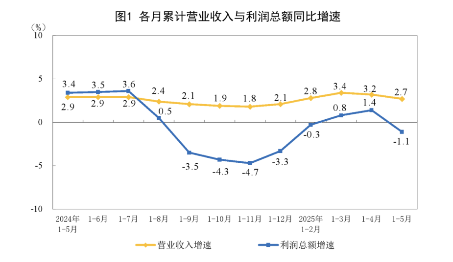 于卫宁表示,从营业收入扣减营业成本计算的毛利润角度看,1—5月份,规上工业企业毛利润同比增长1.1%,拉动全部规上工业企业利润增长3.0个百分点。从营业收入看,1—5月份,规模以上工业企业营业收入同比增长2.7%,工业企业营收持续保持增长态势,为企业下阶段盈利恢复创造有利条件。
