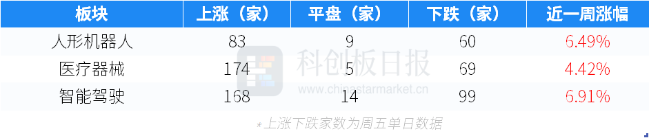作为对比,本周人形机器人、医疗器械、智能驾驶二级市场表现如下表所示。