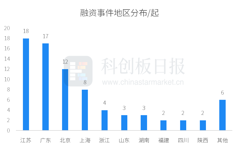 从地区来看,本周江苏、广东、北京等地公司较受青睐,融资事件数均在10起以上;江苏以18起融资活跃度居首位。以单个城市来看,北京有12家公司获投,位列第一;深圳紧随其后,有11家公司获投。
