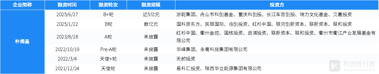 朴烯晶成立于2021年,专注于超高纯聚合物特种材料的自主研发。近日,公司宣布完成近5亿元B+轮融资。本轮投资由浙能集团、舟山市科创基金等完成。所融资金将主要用于上海金山工厂超高纯聚合物材料一期生产线建设收尾等。